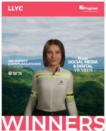 La IA se consolida como una gran herramienta en la comunicación corporativa, y la innovadora embajadora digital “Clara”, creada por la firma de consultoría LLYC para la compañía Progreso, es el ejemplo de ello. Esta novedosa herramienta ha sido reconocida en los PR News Impact Communications Awards 2025 con el primer lugar en la categoría “CSR, ESG or DEI Report” y con una mención honorífica en “ESG/Sustainability Campaign”. Consolidando su éxito, Clara también ha sido galardonada en los International Sustainability Awards con el primer lugar en la categoría “Uso de la IA”.