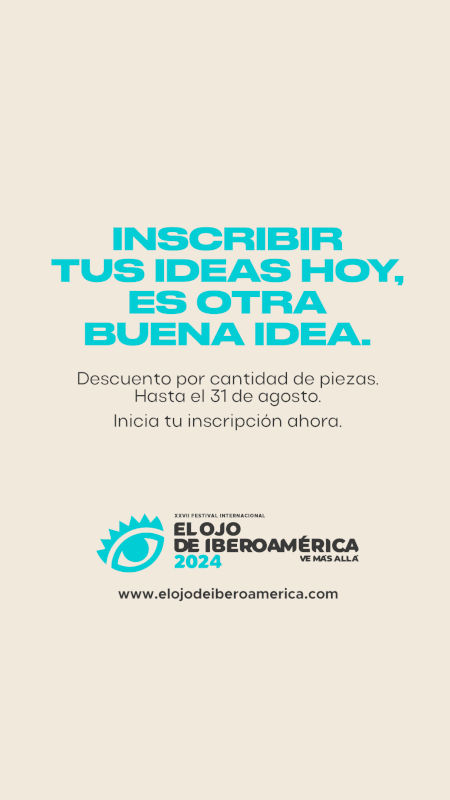 El Ojo anuncia un nuevo plazo para participar hasta 31 de agosto. Se podrá inscribir con el beneficio de acceso a los descuentos por cantidad de piezas inscriptas para inscribir las mejores ideas, trabajos y casos para participar por todos los Premios del Festival Internacional El Ojo de Iberoamérica 2024 tanto a nivel regional, global y local.
